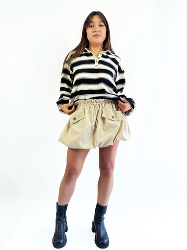 Rugby polo rayada con cardigan puño - Negro/Kakhi