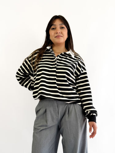 Rugby polo rayada con cardigan puño - Negro/blanco