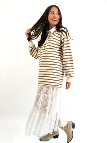 Rugby polo rayada con cardigan puño - Beige/cafe