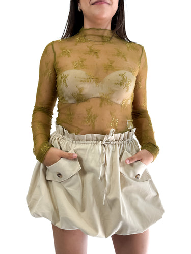 Blusa manga larga mesh encaje - Beige