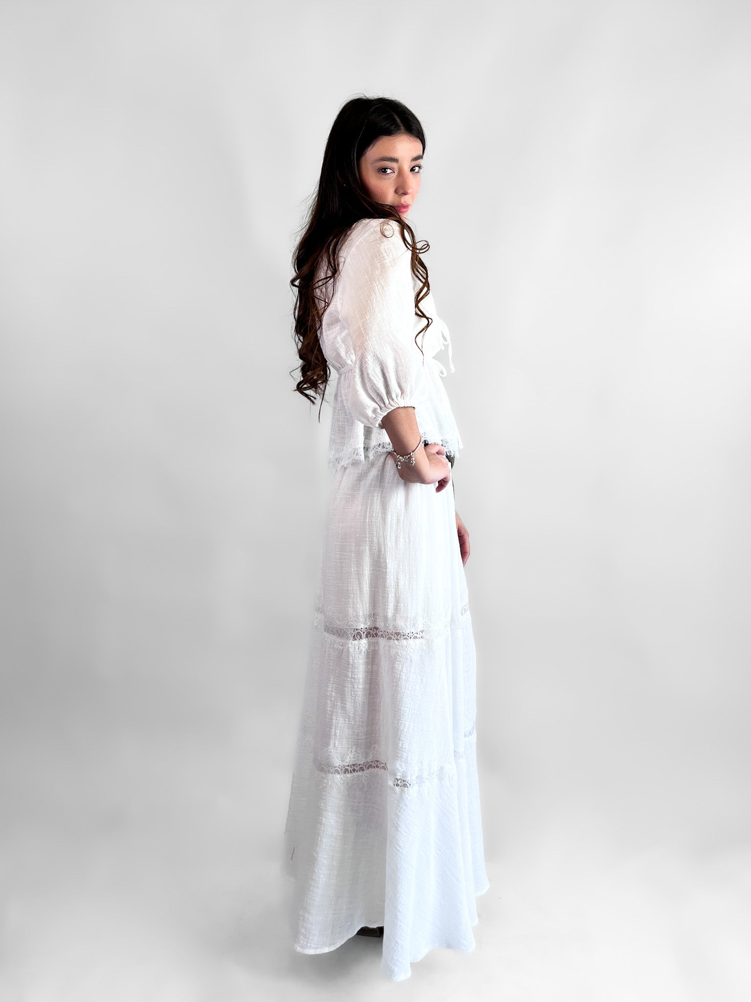Blusa algodón encaje manga 3/4