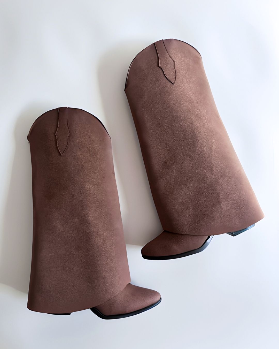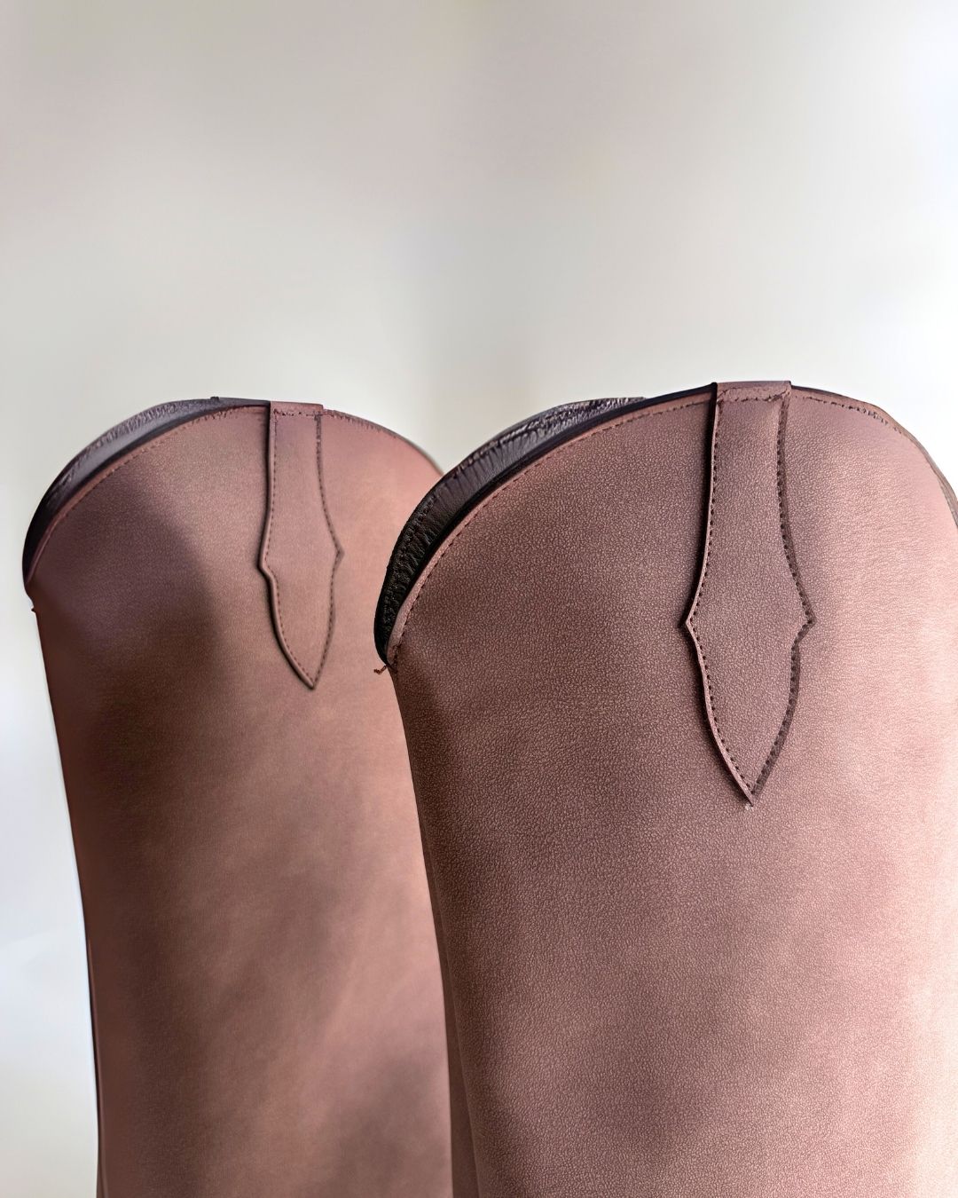 Estas no son las típicas botas vaqueras… son una versión XL pensada para robar miradas. Con un diseño oversized y una vibra entre lo western y lo futurista, estas botas camel en acabado tipo gamuza son el statement que tu outfit necesita.